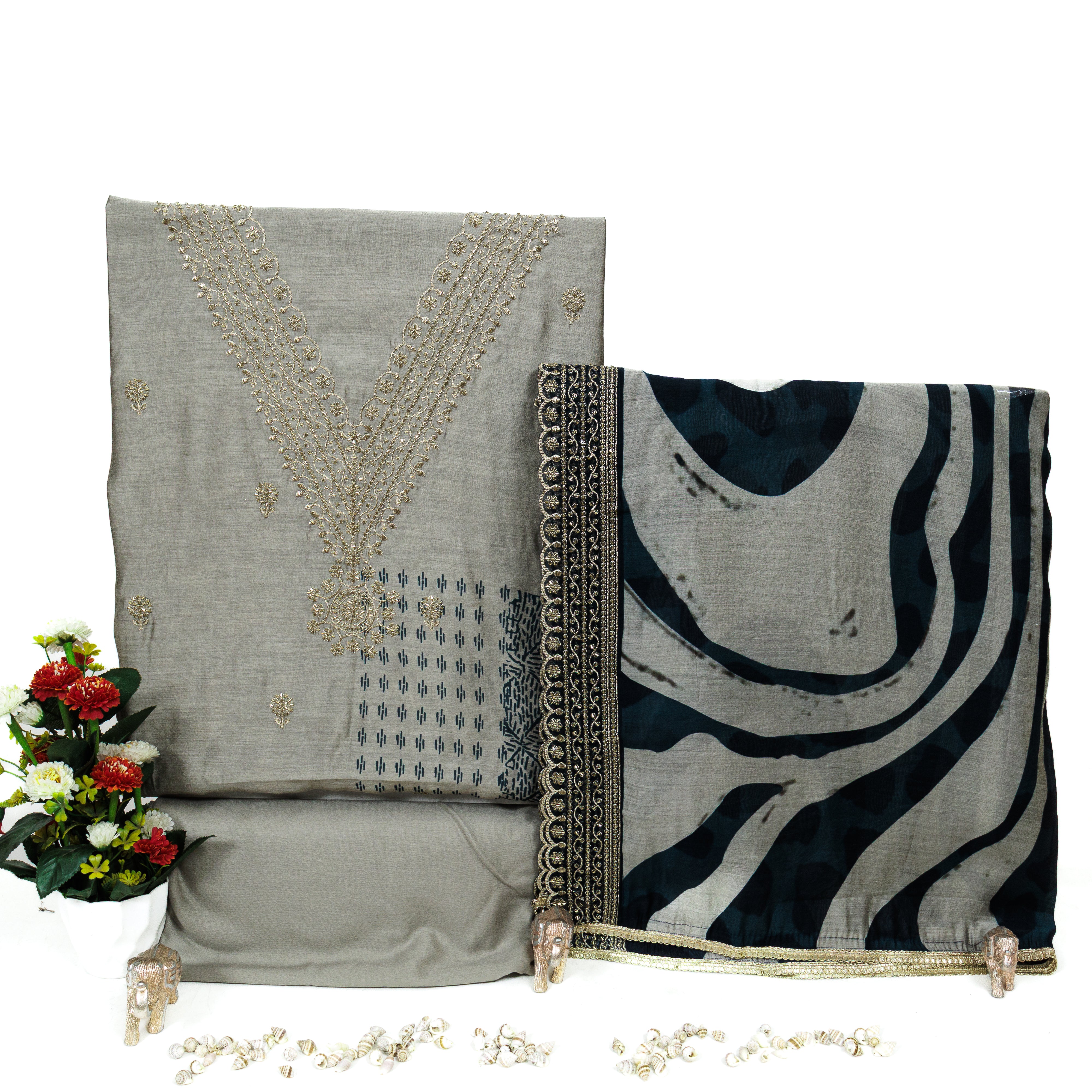 Muslin Party Wear Suit Fabric with muslin dupatta