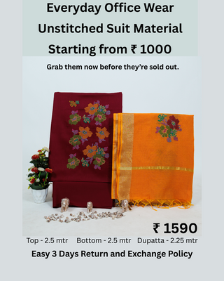 Cotton Cross Stitch Office Wear Suit Dress Material fabric with silk dupatta