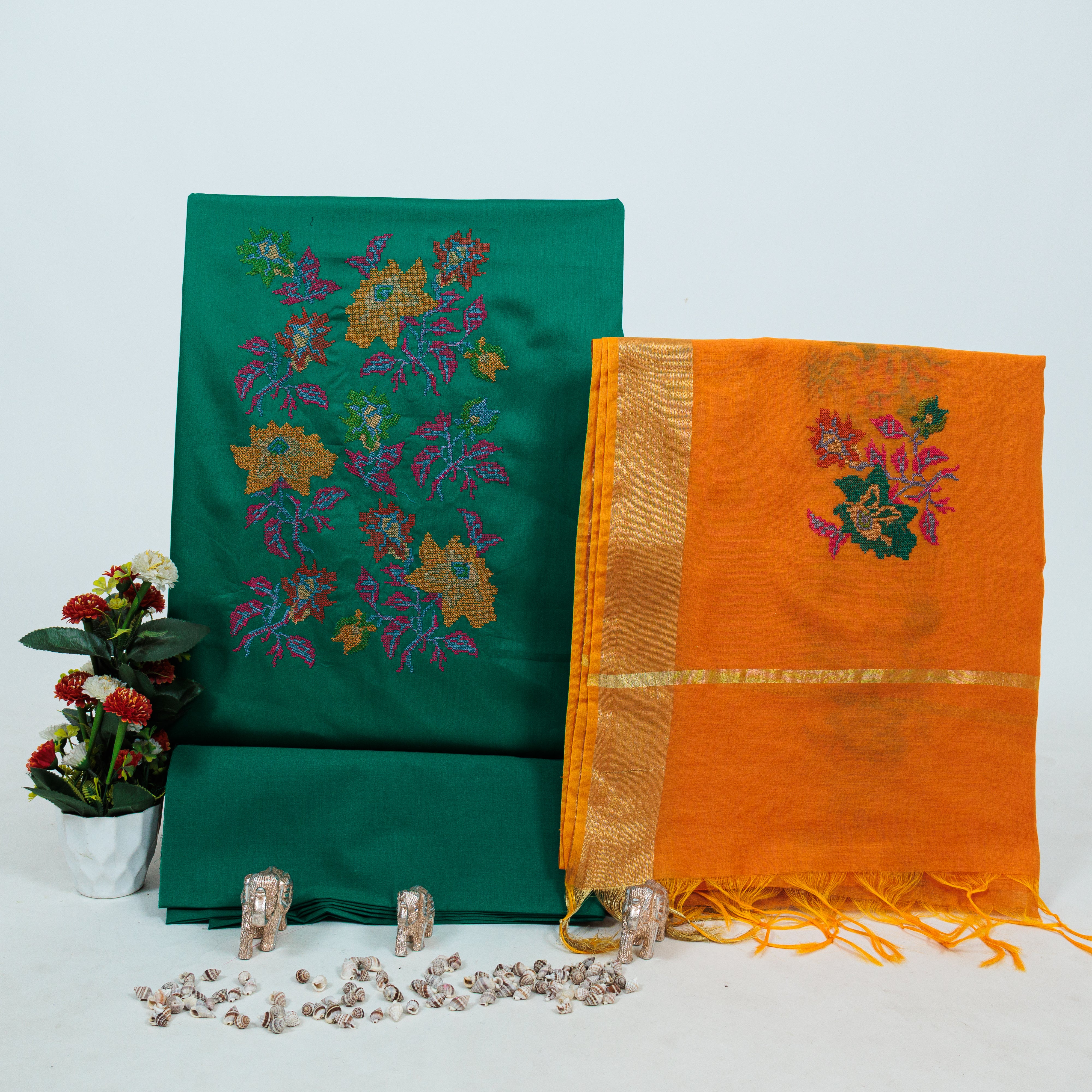 Cotton Cross Stitch Office Wear Suit Dress Material fabric with silk dupatta