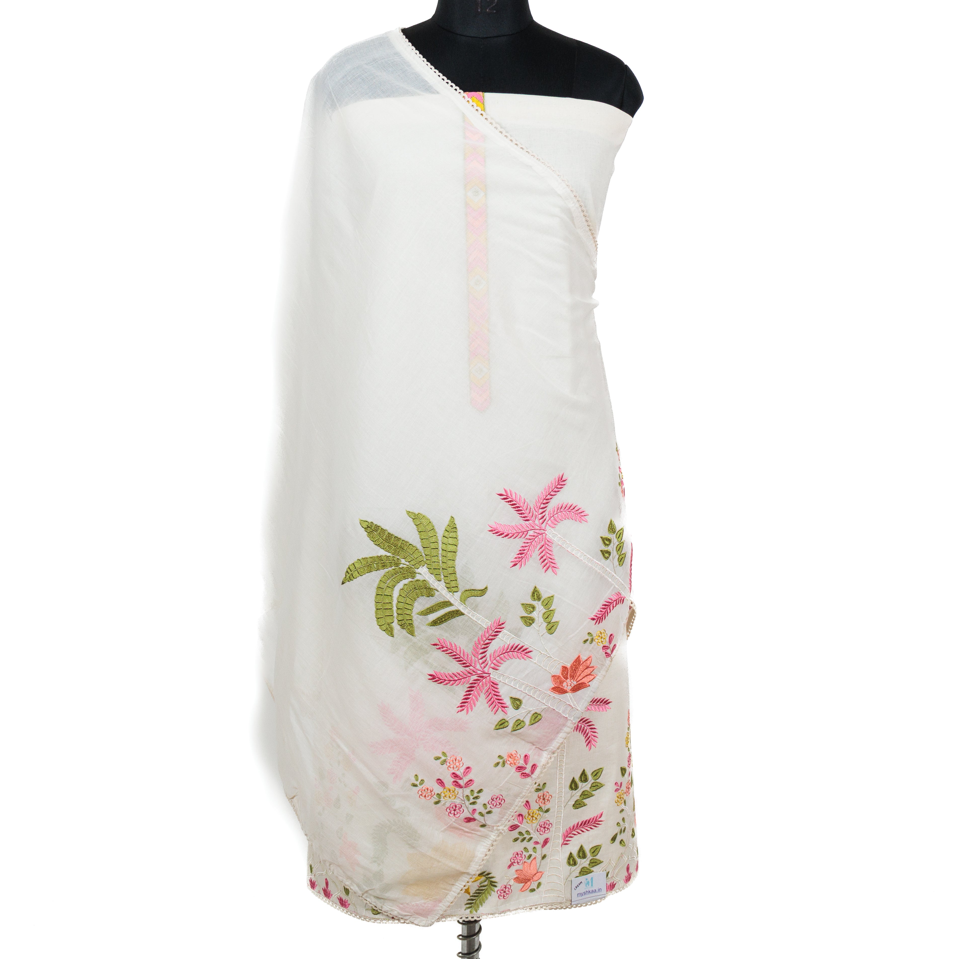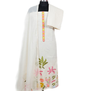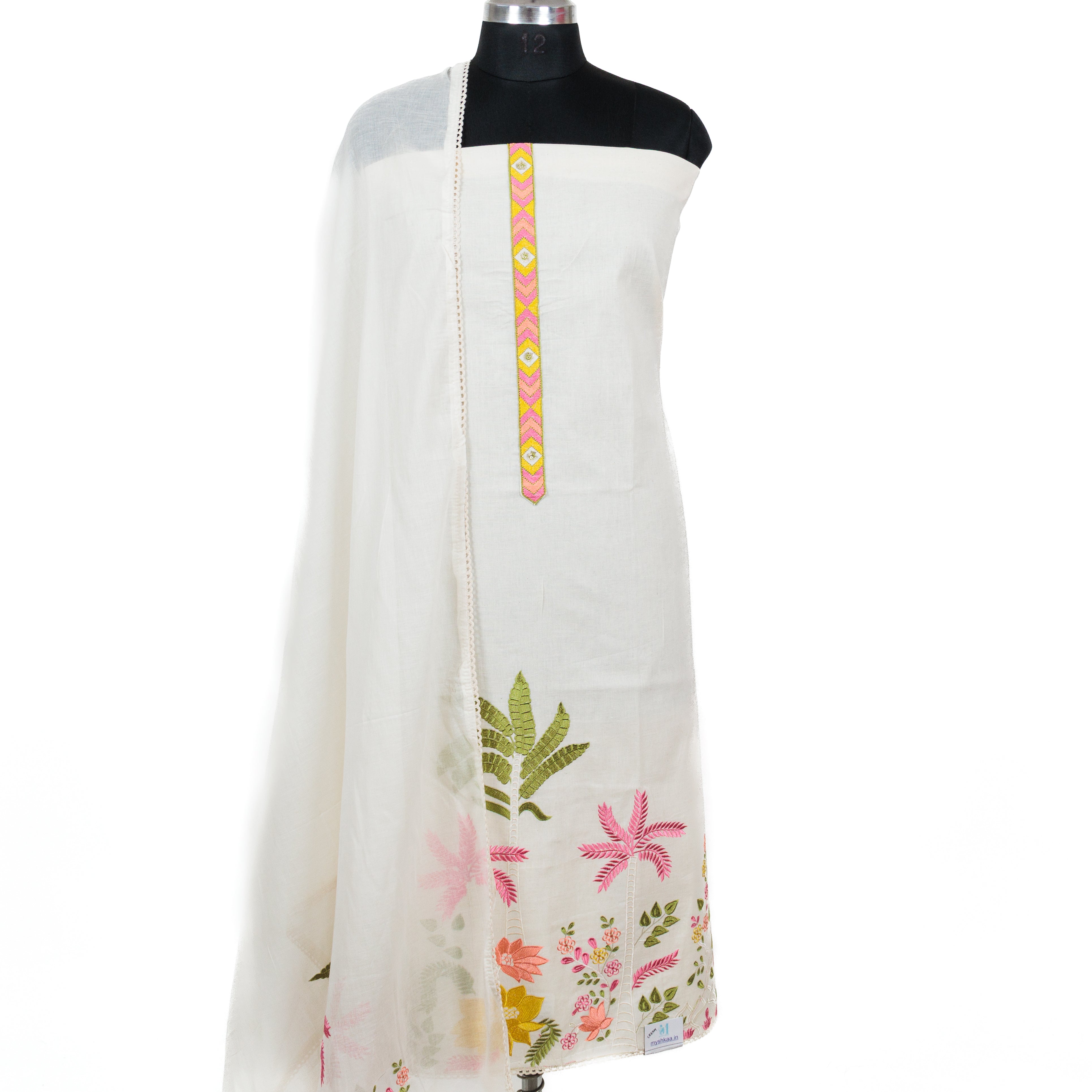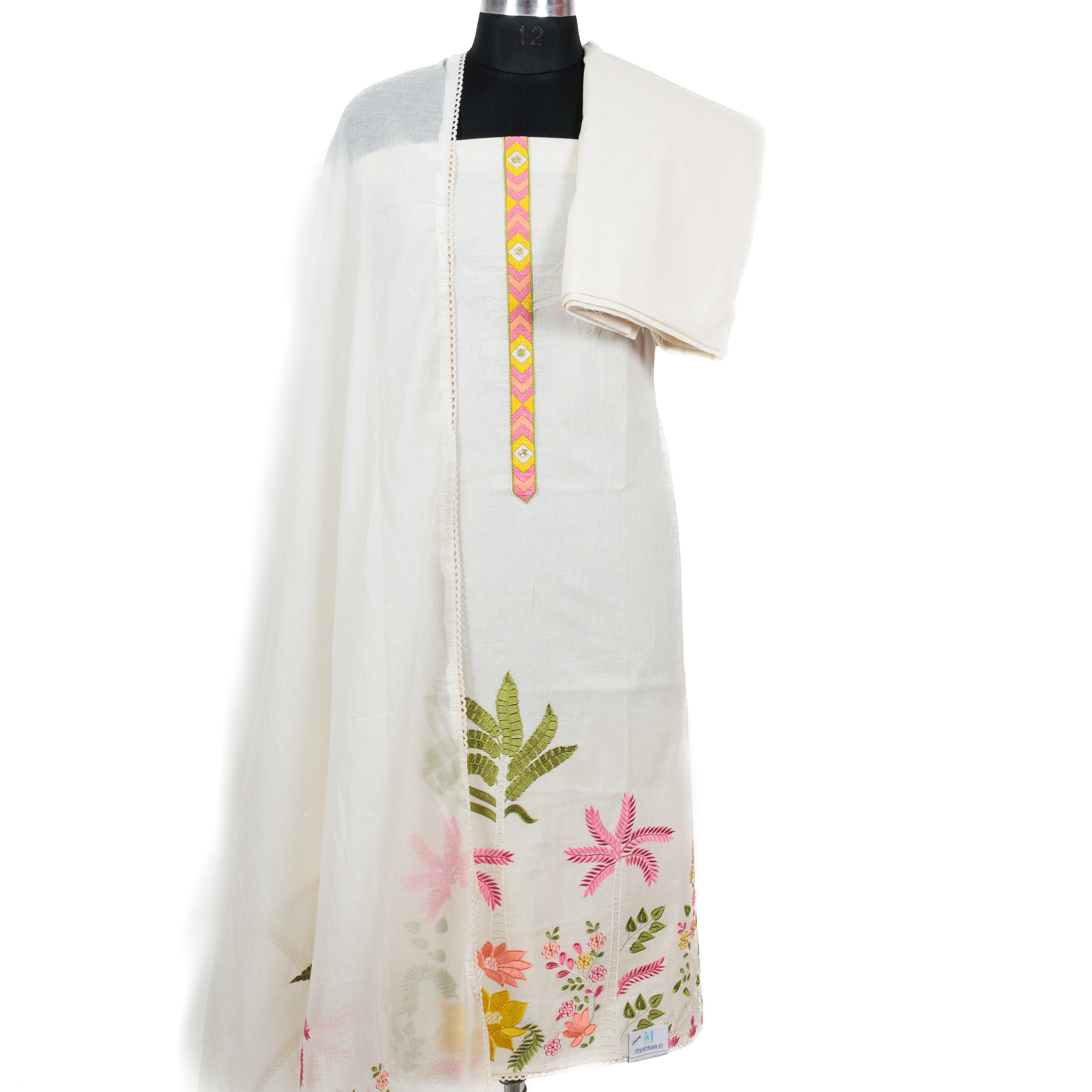 Off-White Handloom Cotton Office Wear Suit fabric with Cotton Dupatta
