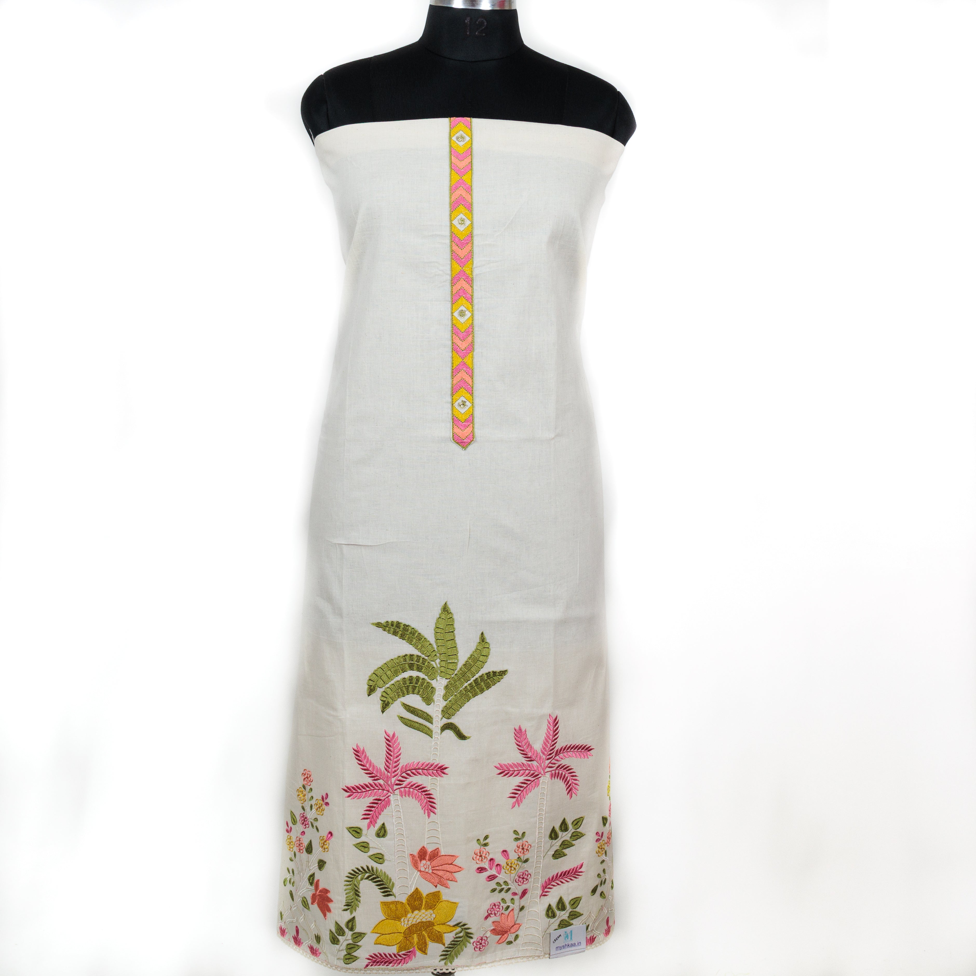 - Fabric Details : Top : Pure Cotton with embroidered motifs || Bottom : Cotton bottom || Dupatta : Cotton Dupatta with embroidered motifs