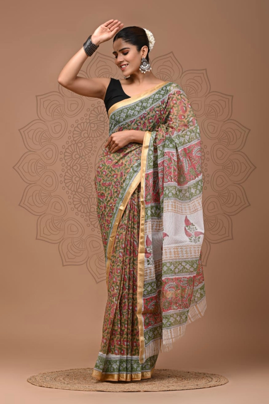 Office Wear Kota Doria Cotton Saree with Unstitched blouse Piece