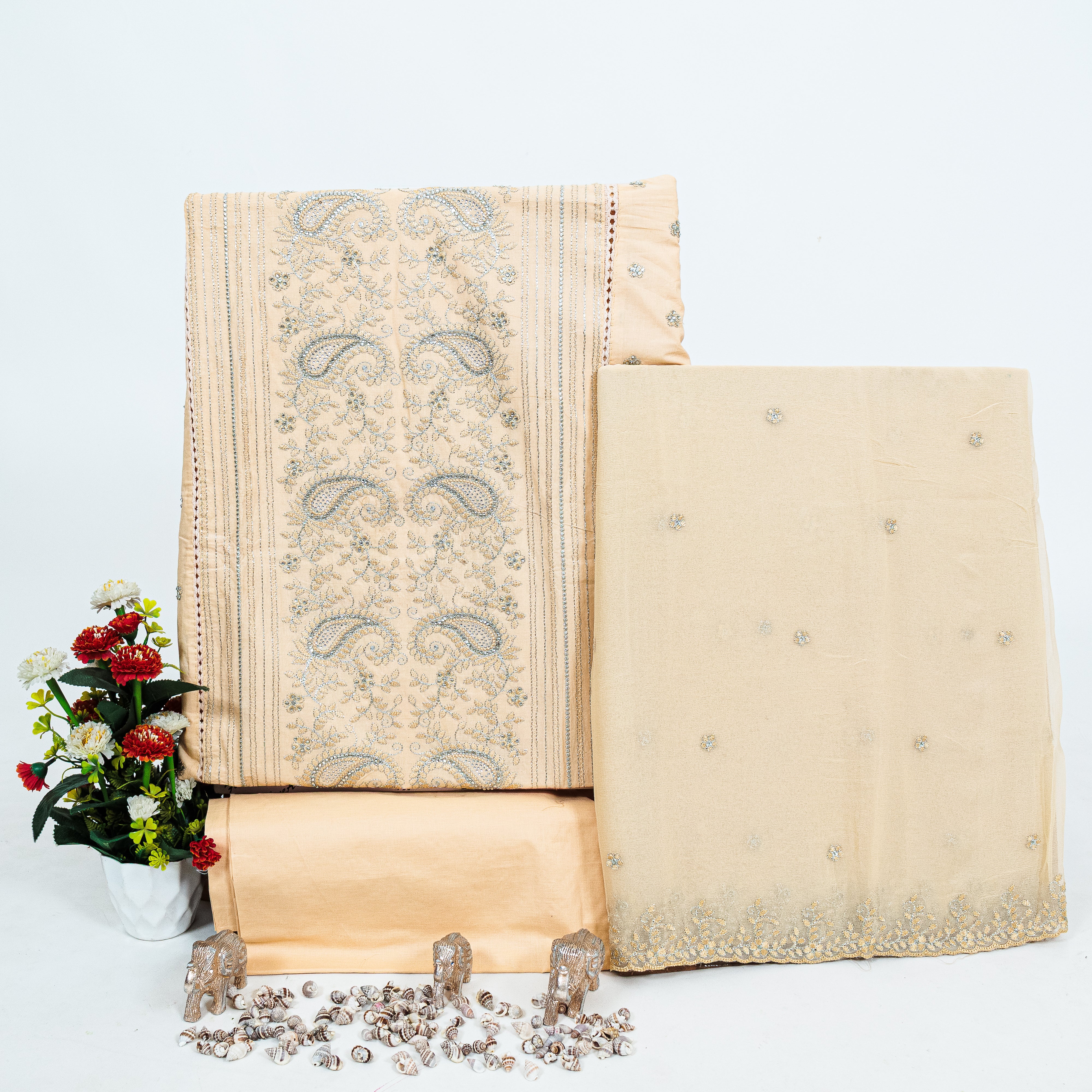 - Office Wear Suit fabric with Pure Chiffon Dupatta