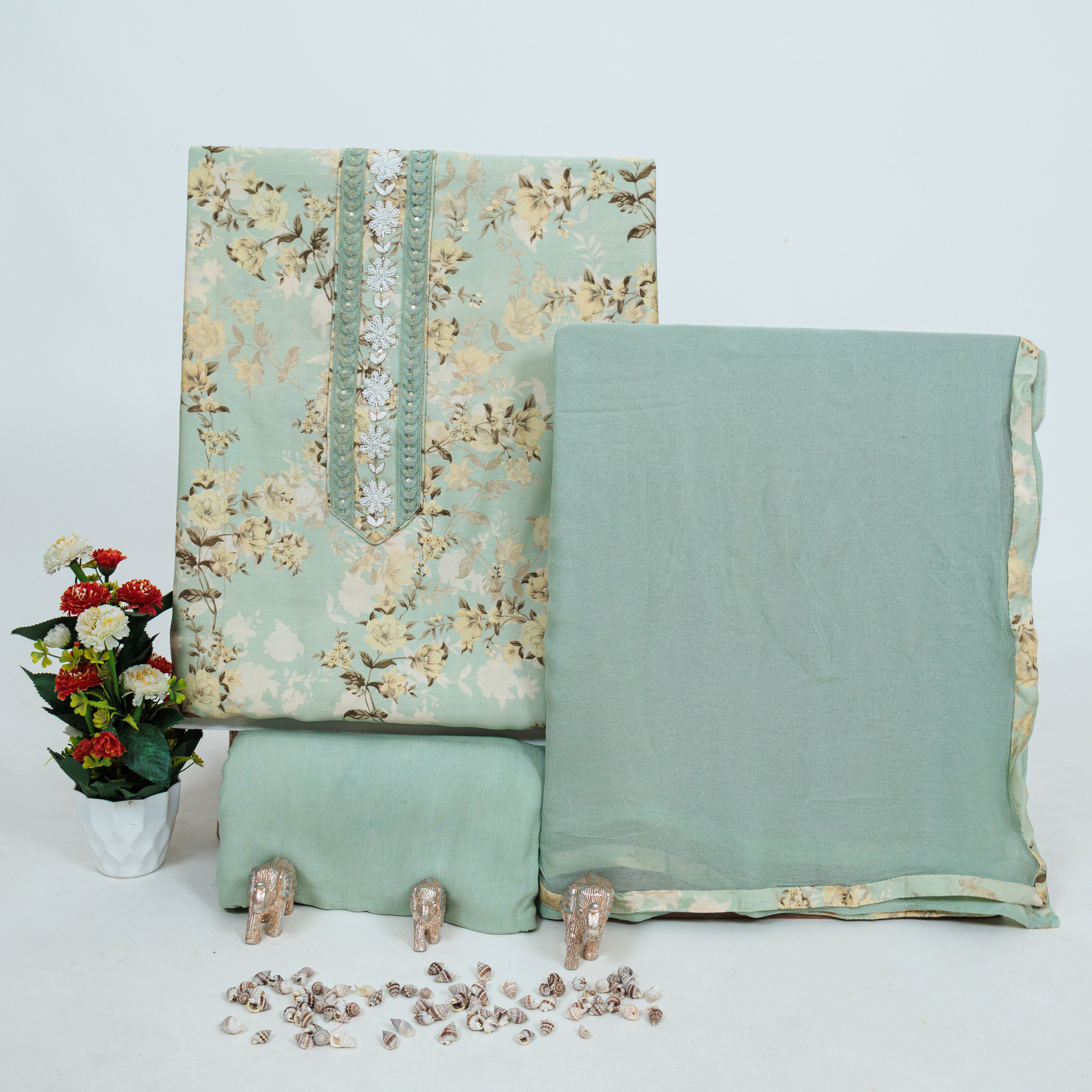 Office Wear Suit fabric with Pure Chiffon Dupatta