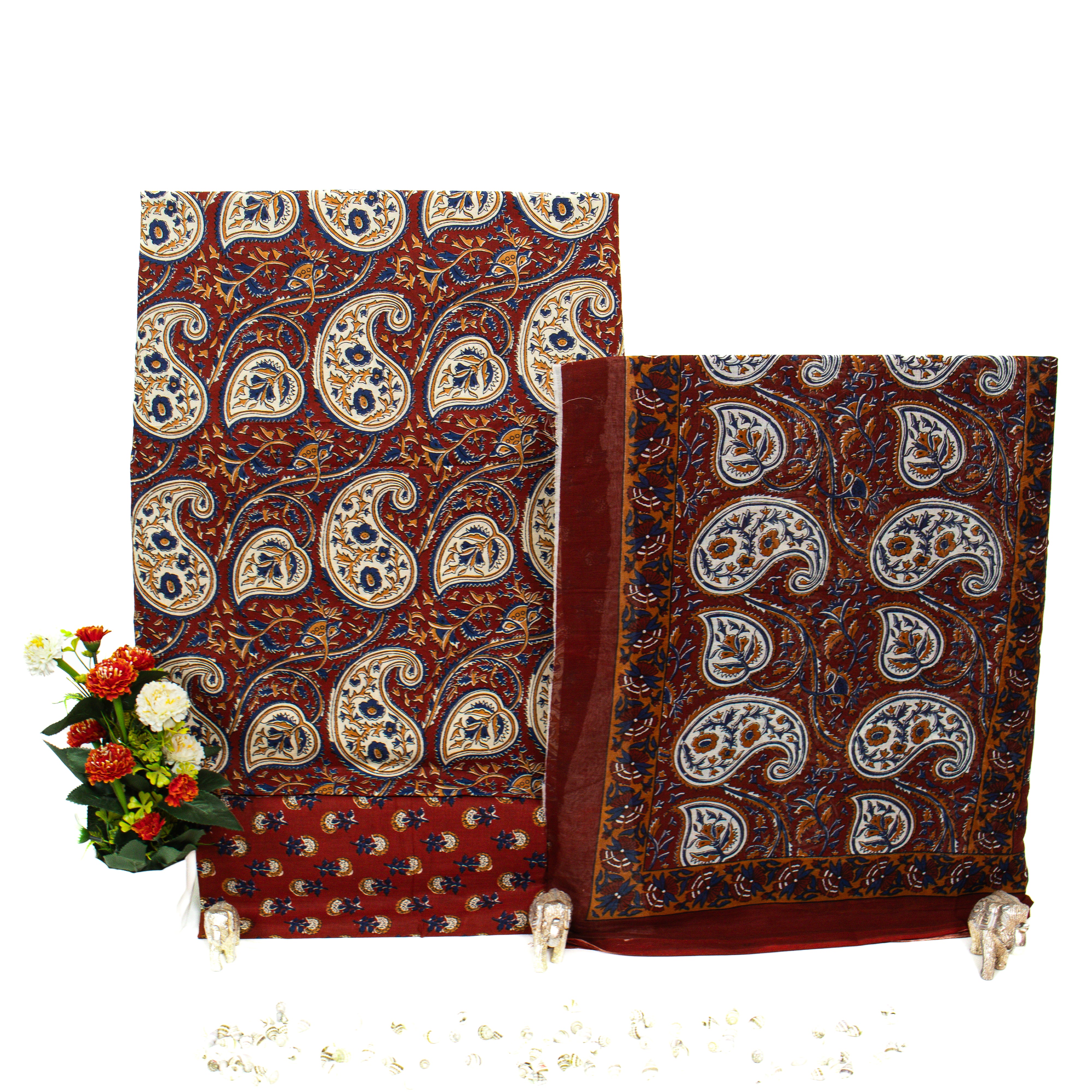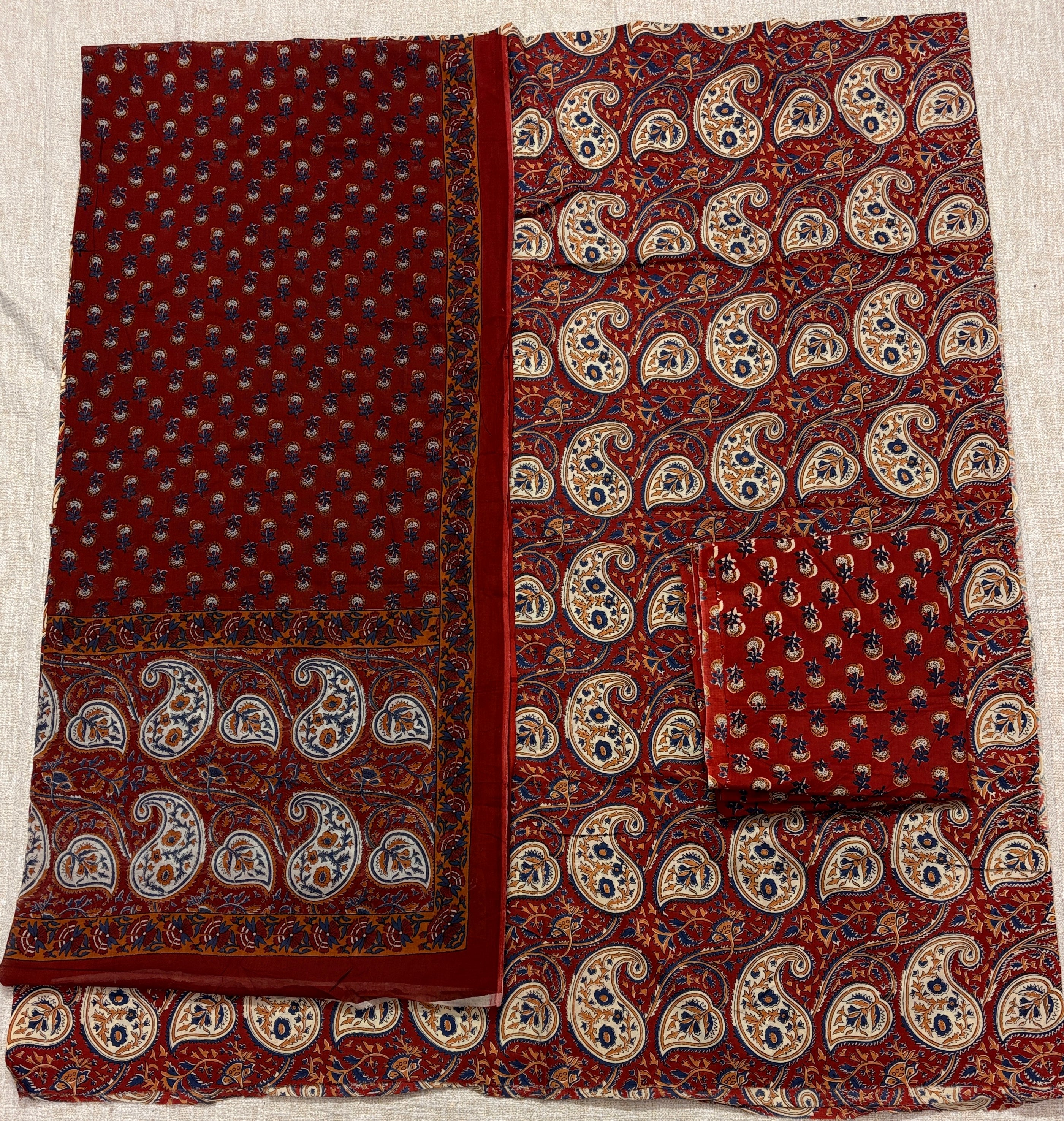 Paisley Print Red Handblock Print Cotton Suit fabric with Cotton Dupatta