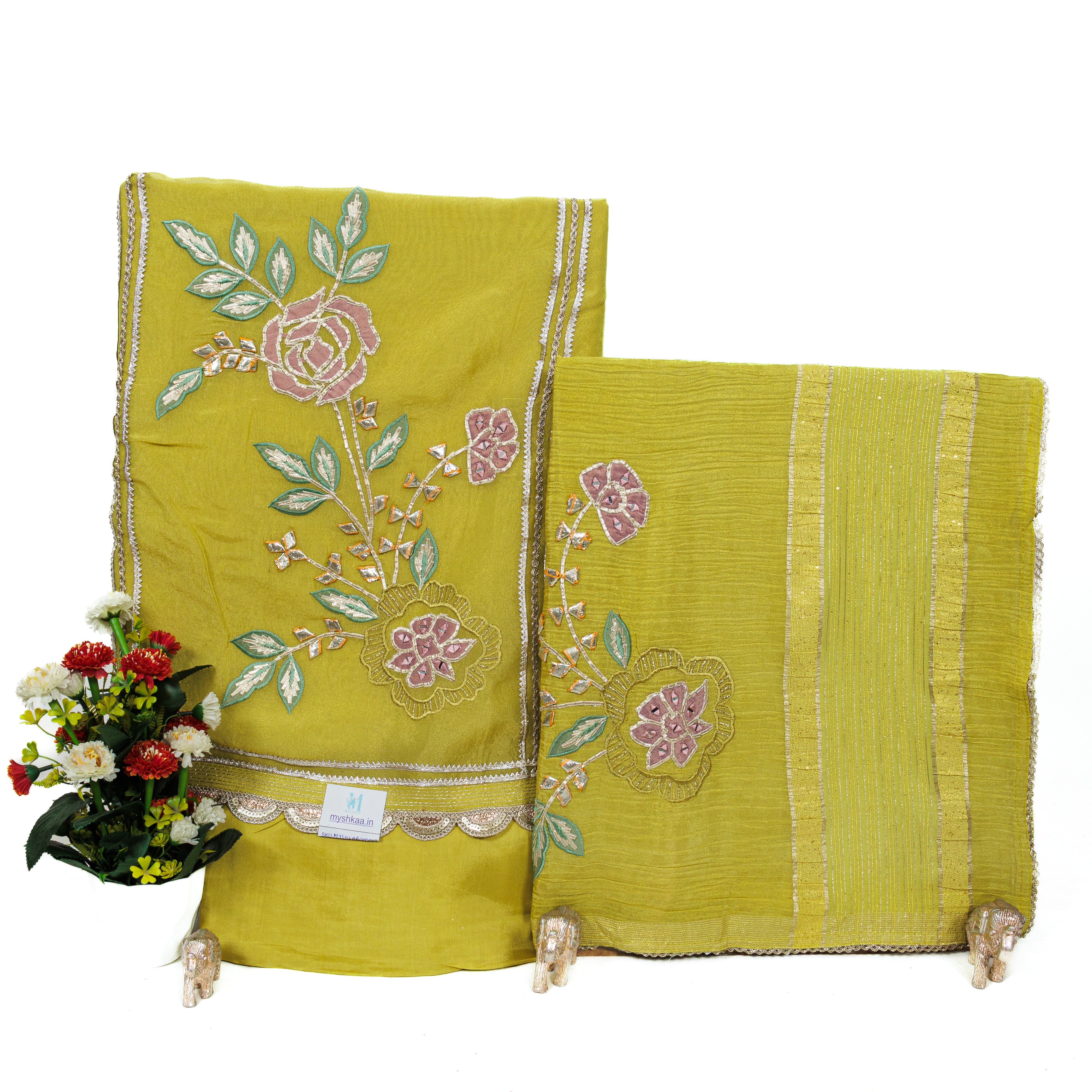 Shimmer Party Wear Suit Fabric with crushed shimmer dupatta