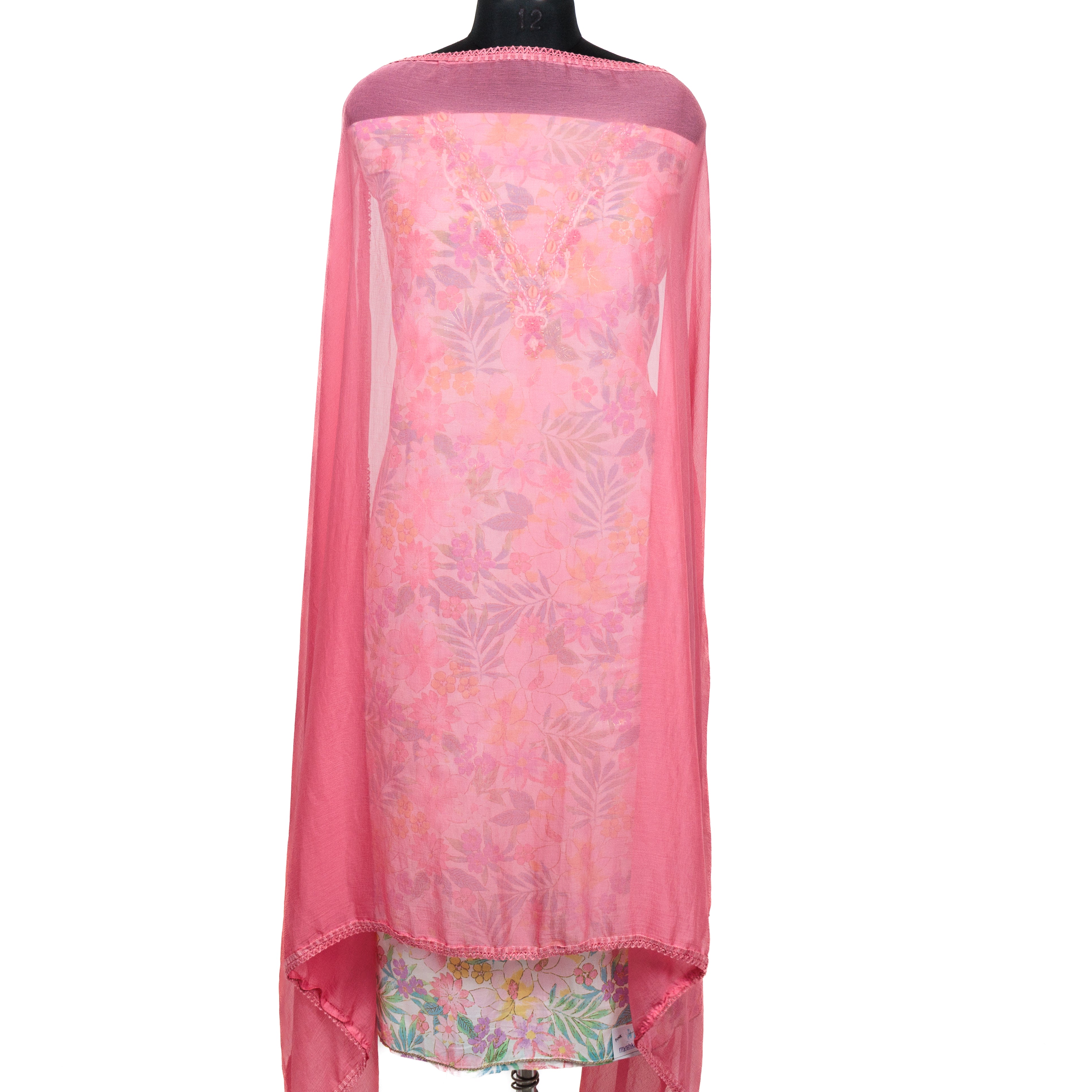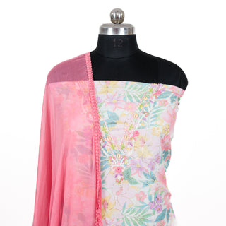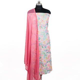 - Pink Cambric Cotton Office Wear Suit fabric with Chiffon Dupatta