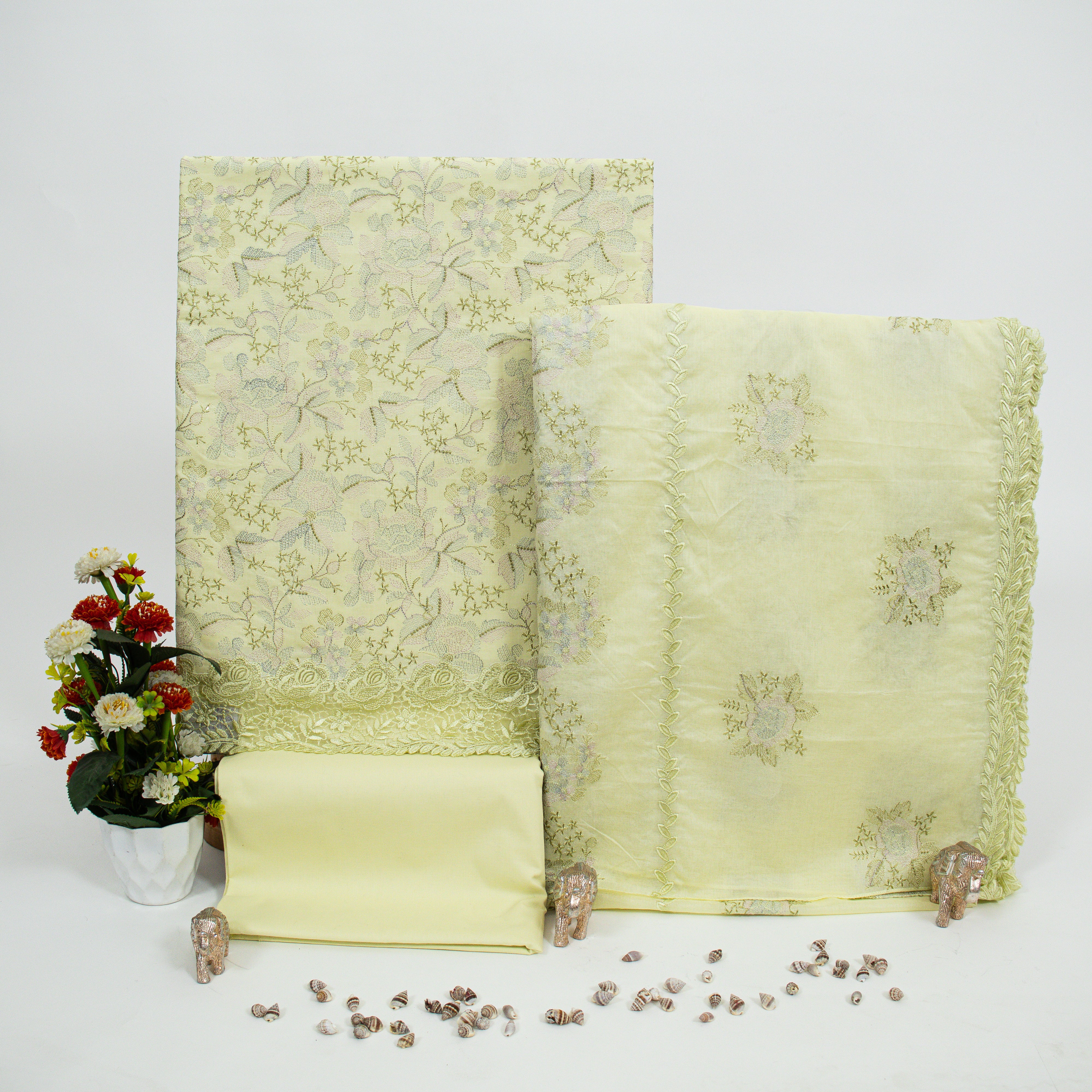 - Fabric Details : Top : Cotton Top with overall embroidery and lace work with jaal on border || Bottom : Premium Cotton Bottom || Dupatta : Premium Cotton dupatta with embroidery