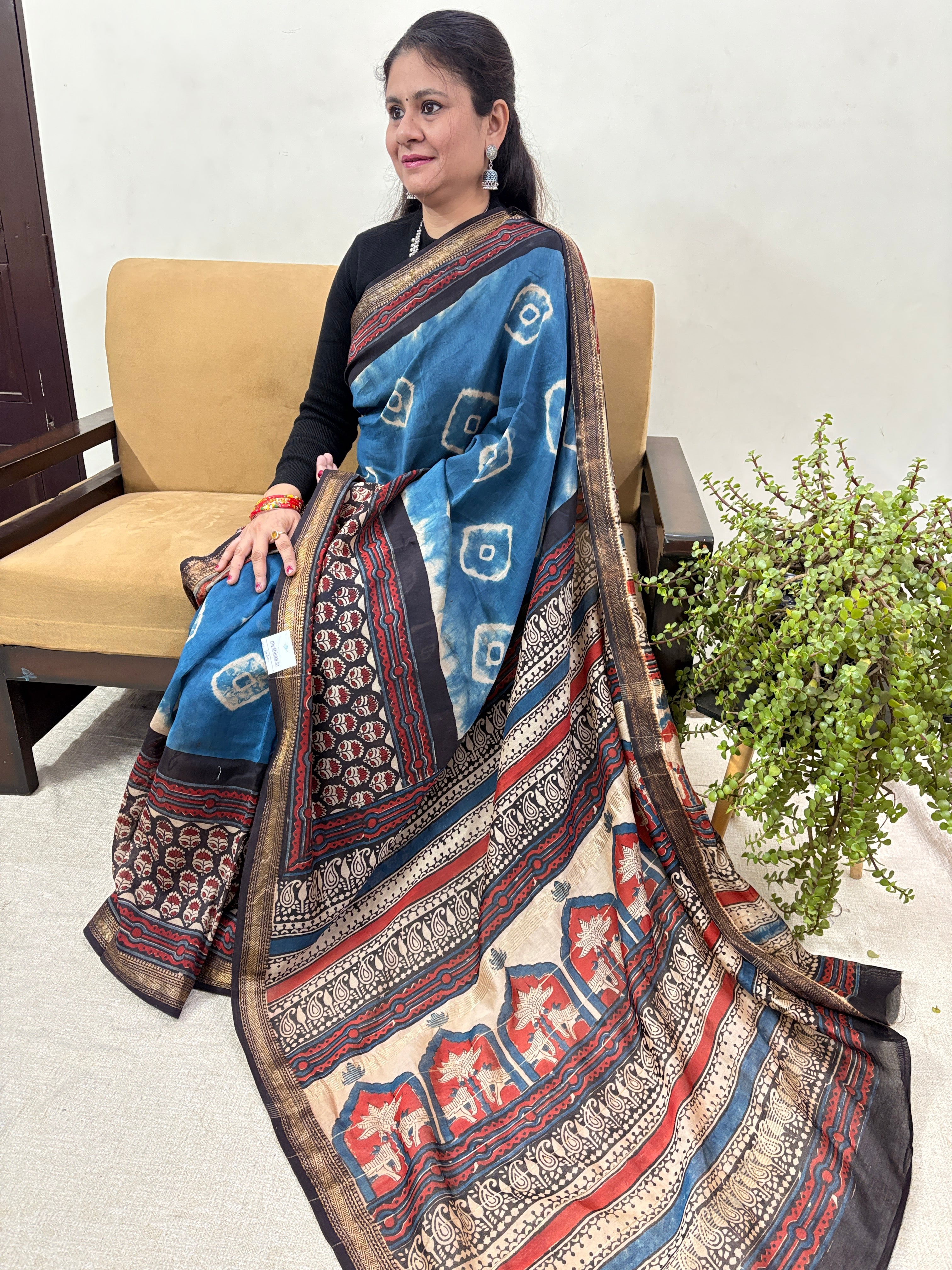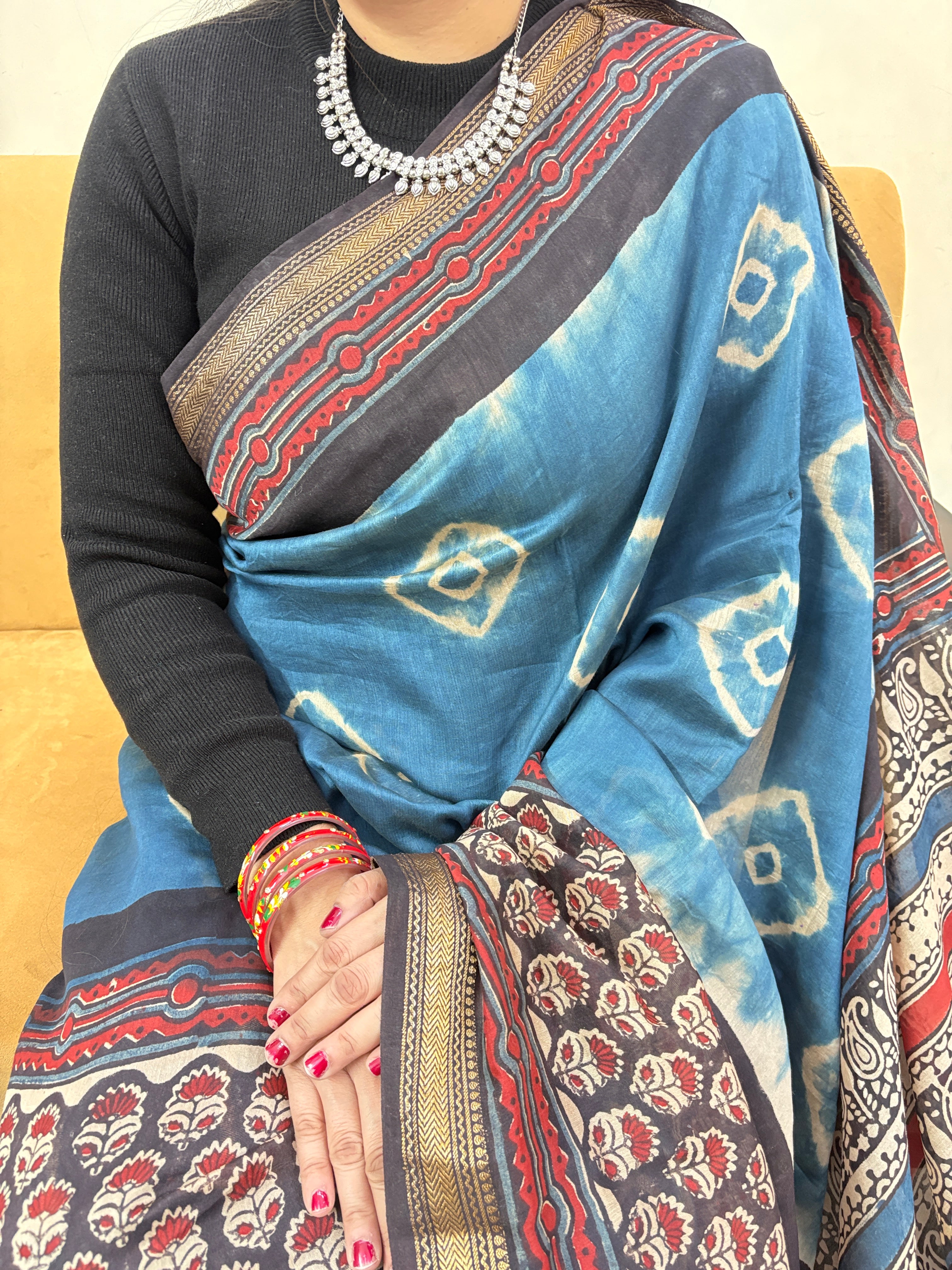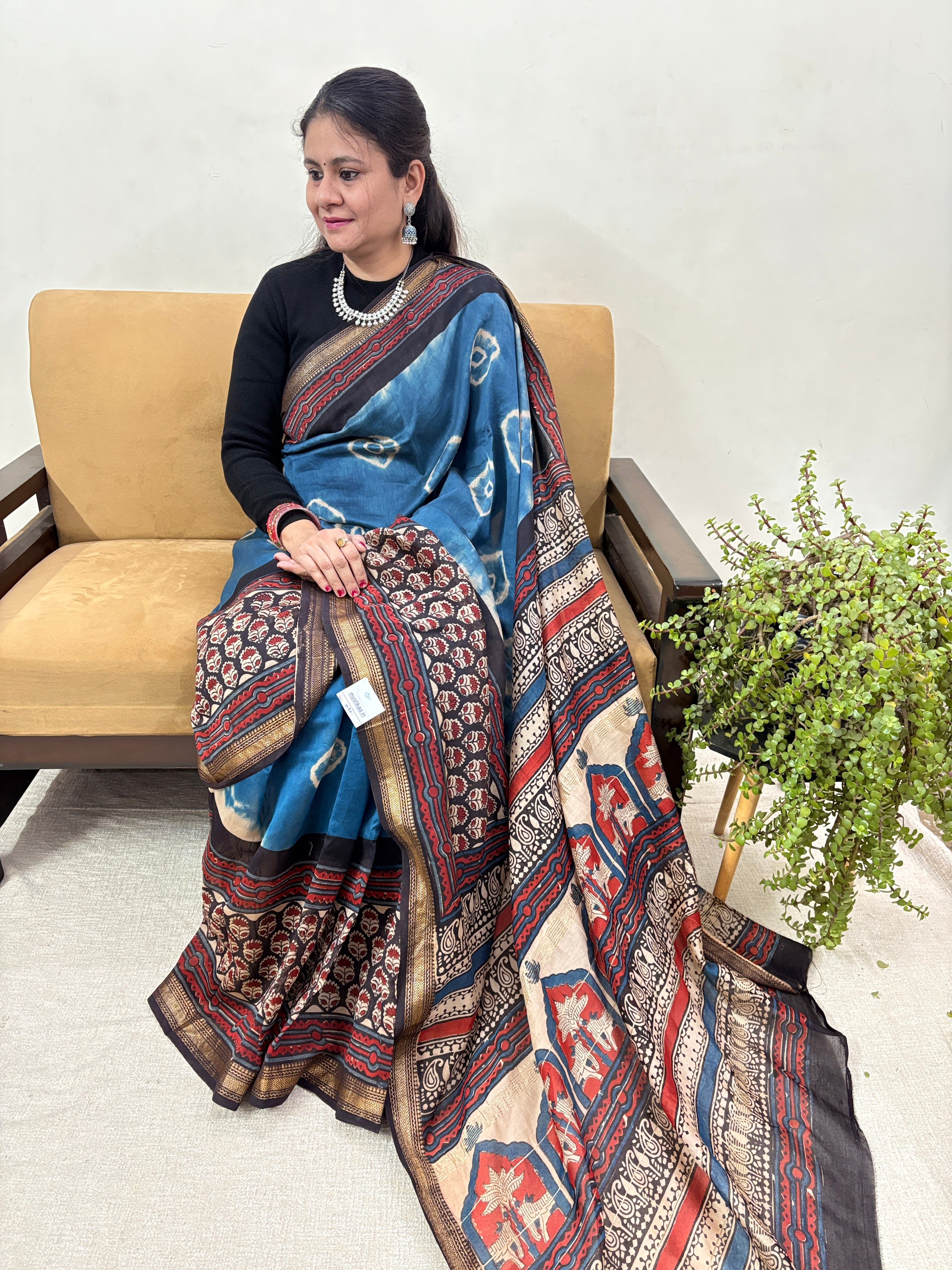 Premium Blue Maheshwari Silk Saree with Unstitched Blouse Piece (Lining Included)