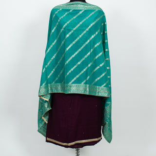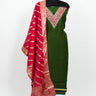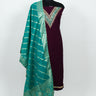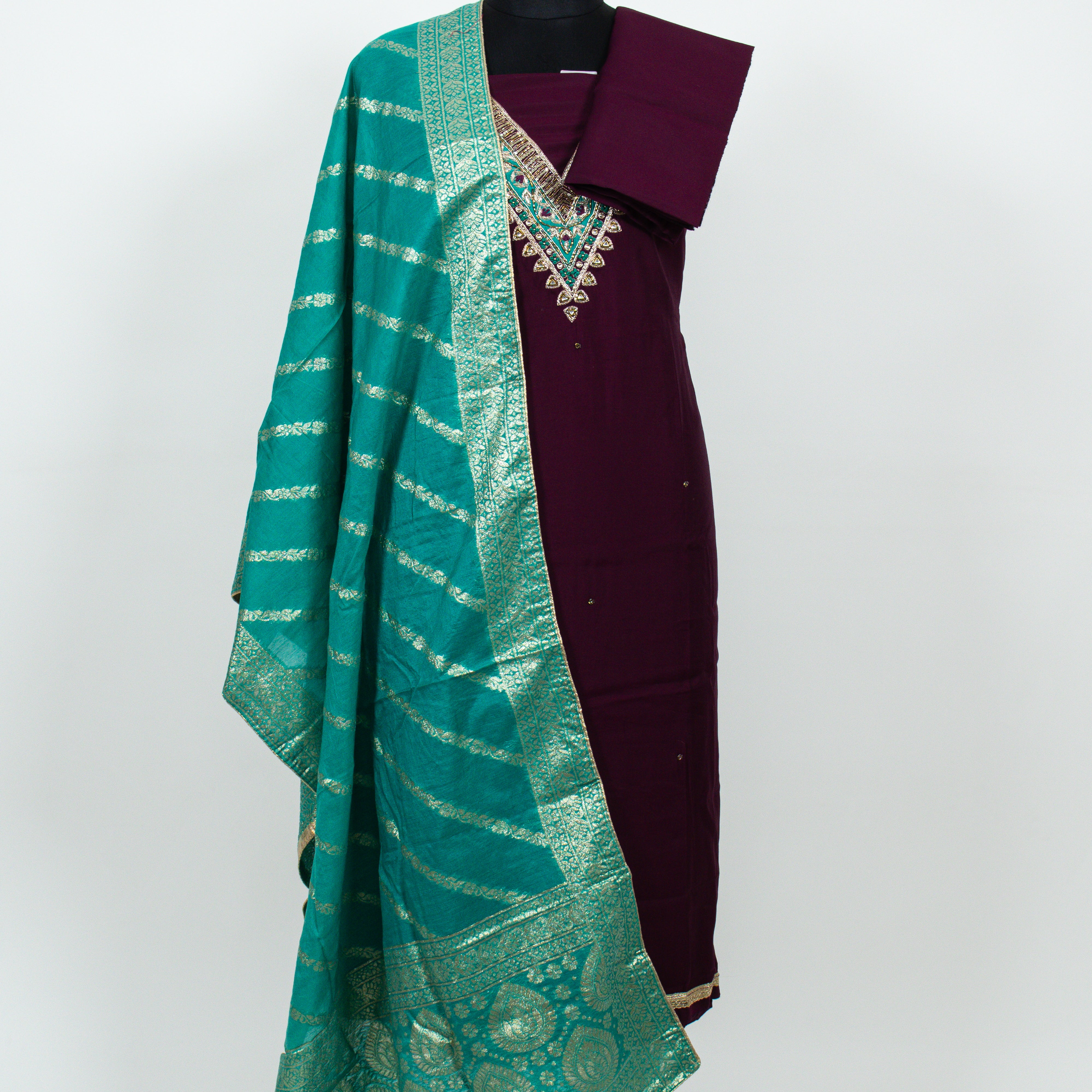 Wine color Party Wear Designer Suit fabric with embroidery and banarasi dupatta