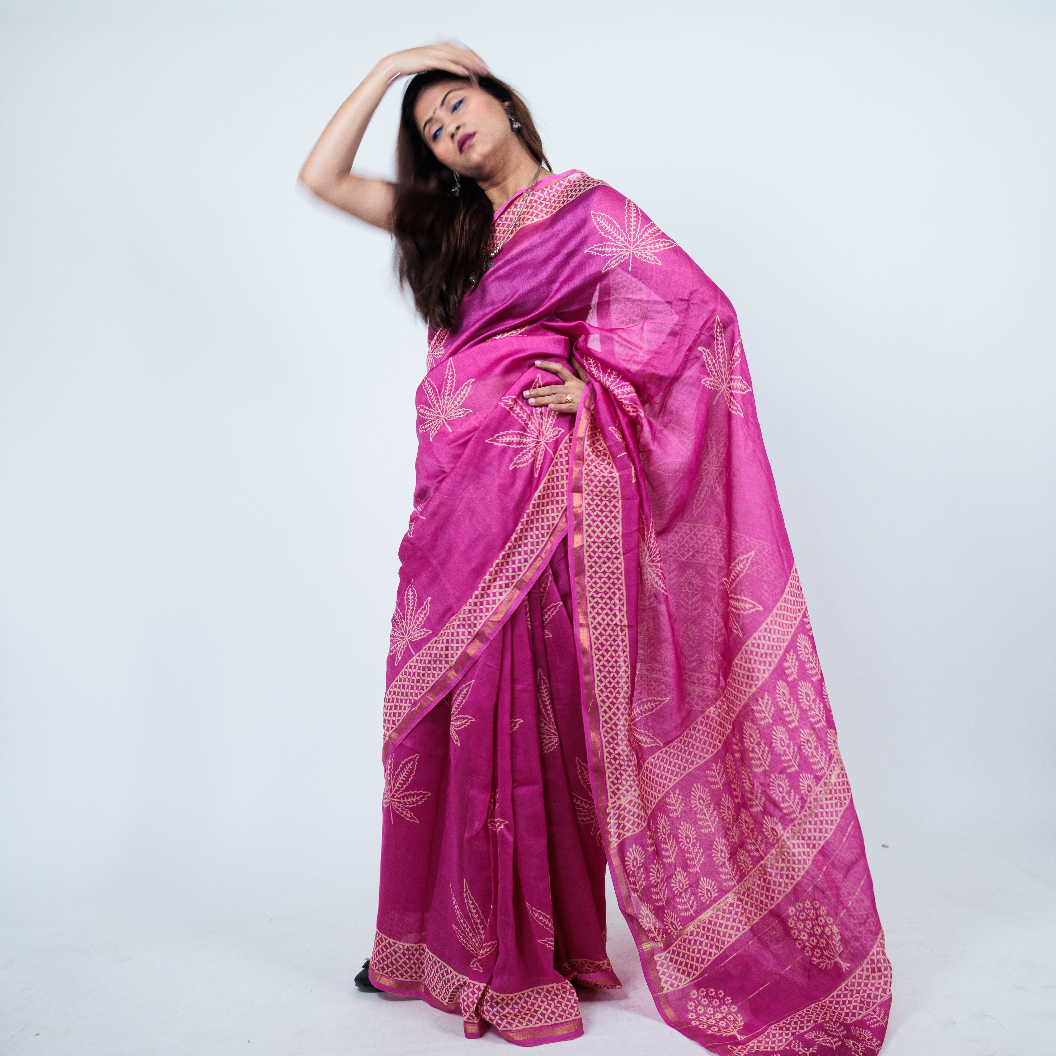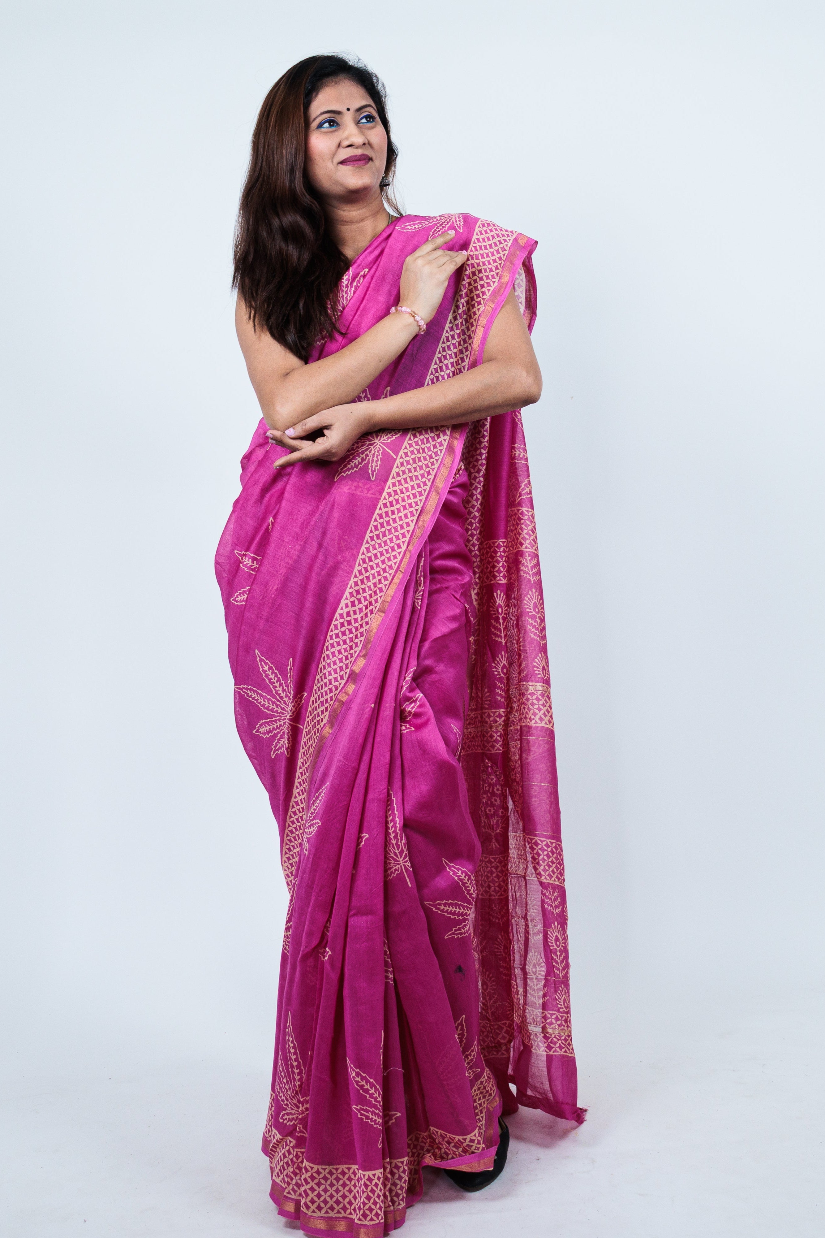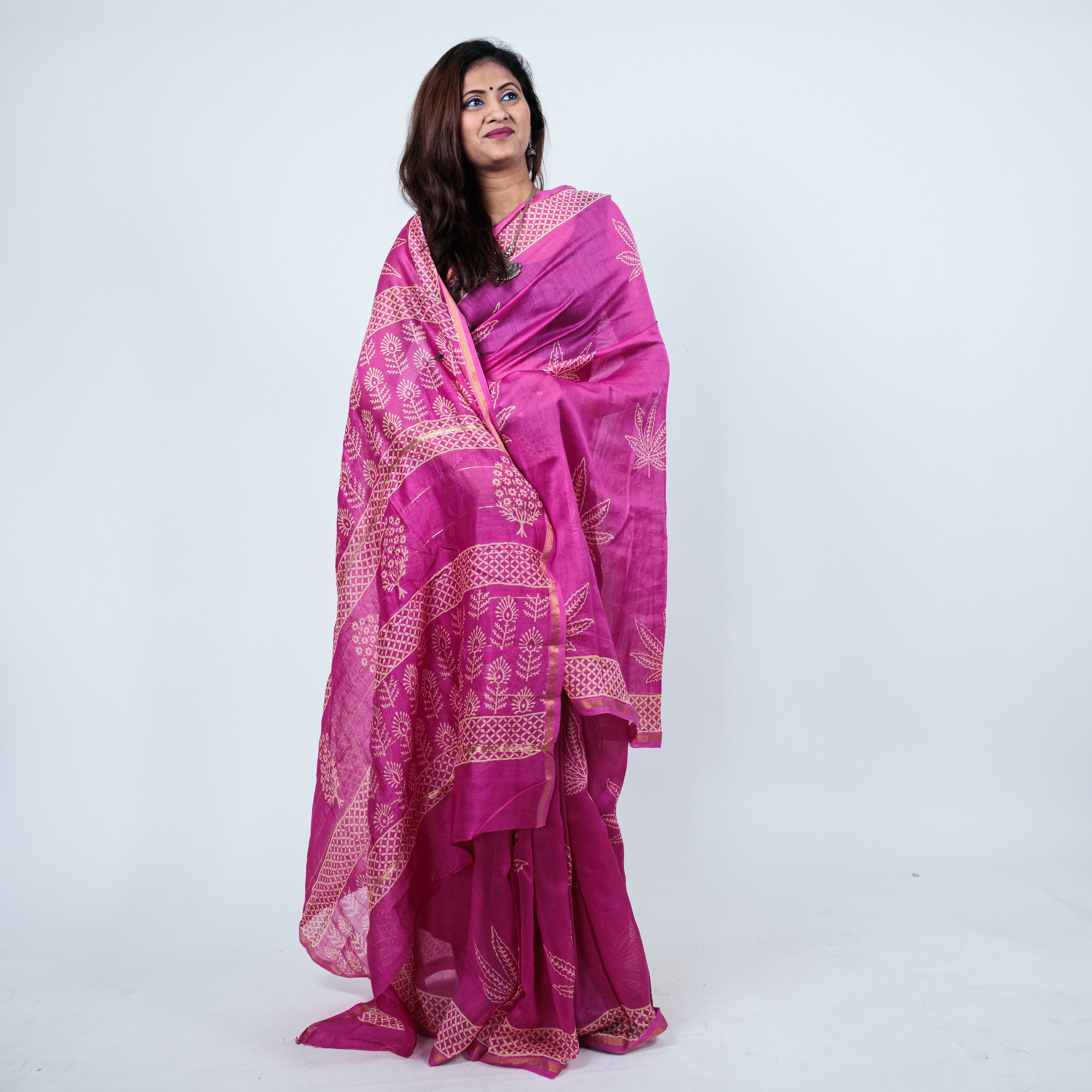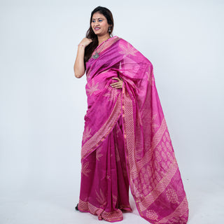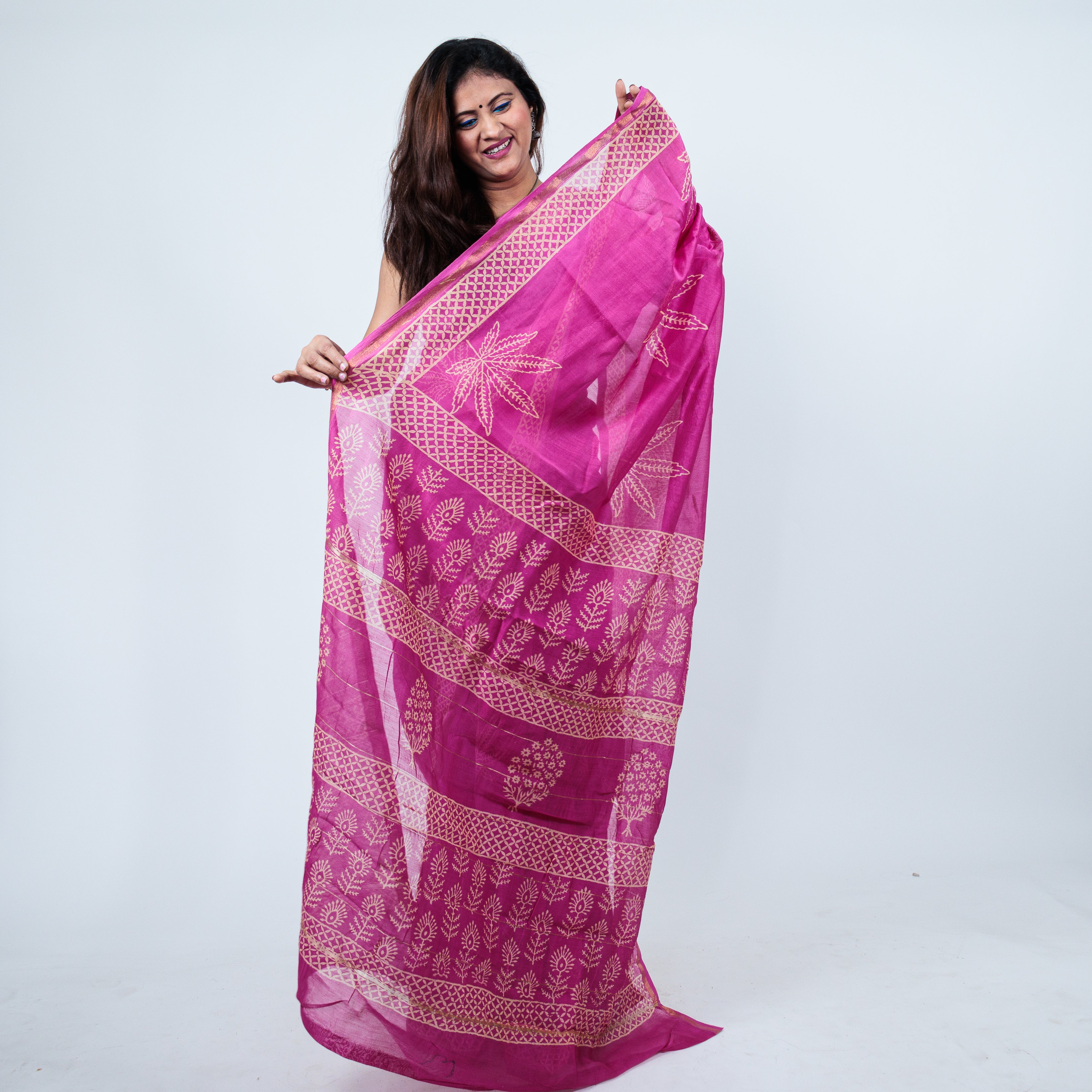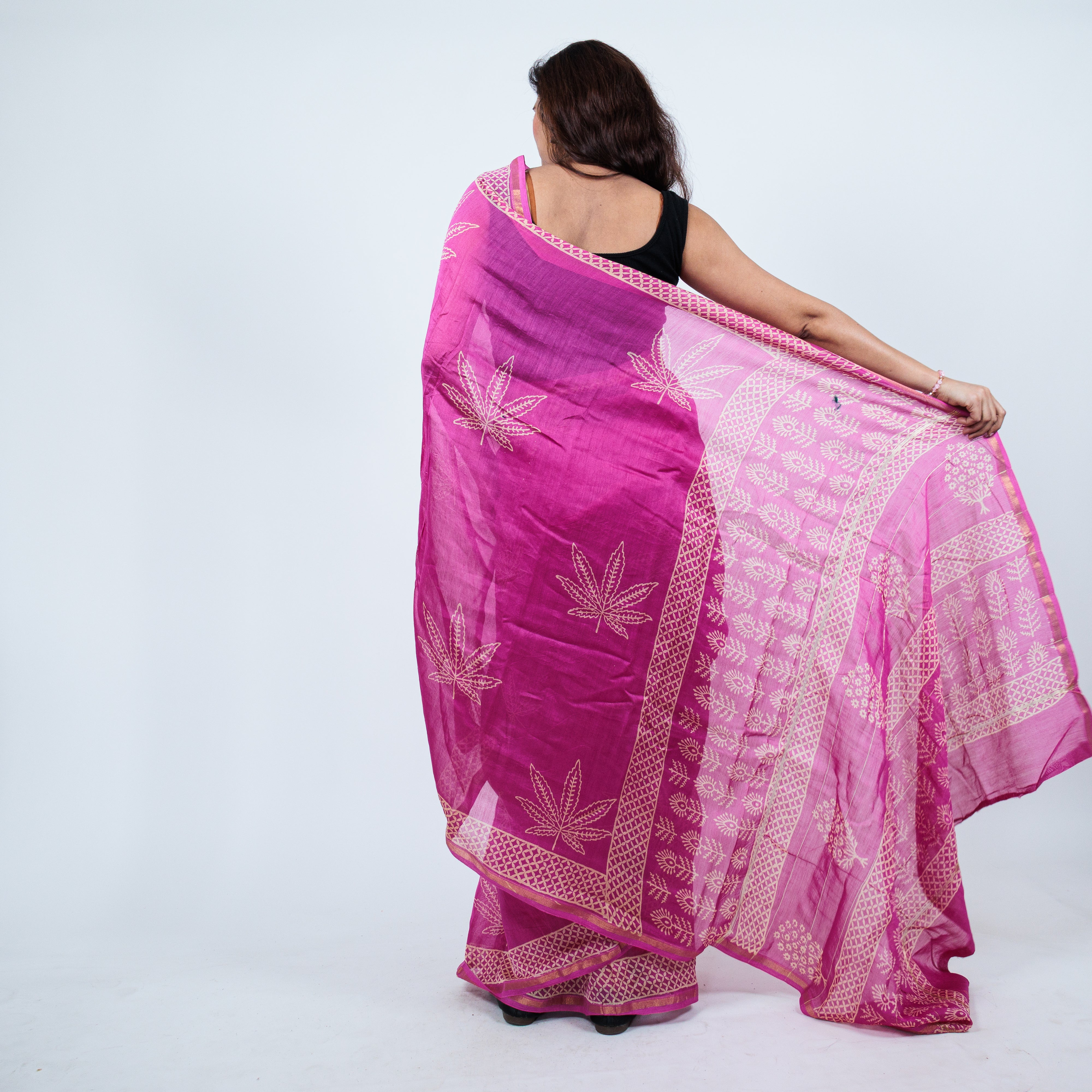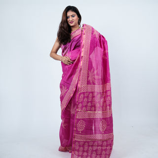 Pink Chanderi Silk Saree with Unstitched Blouse Piece