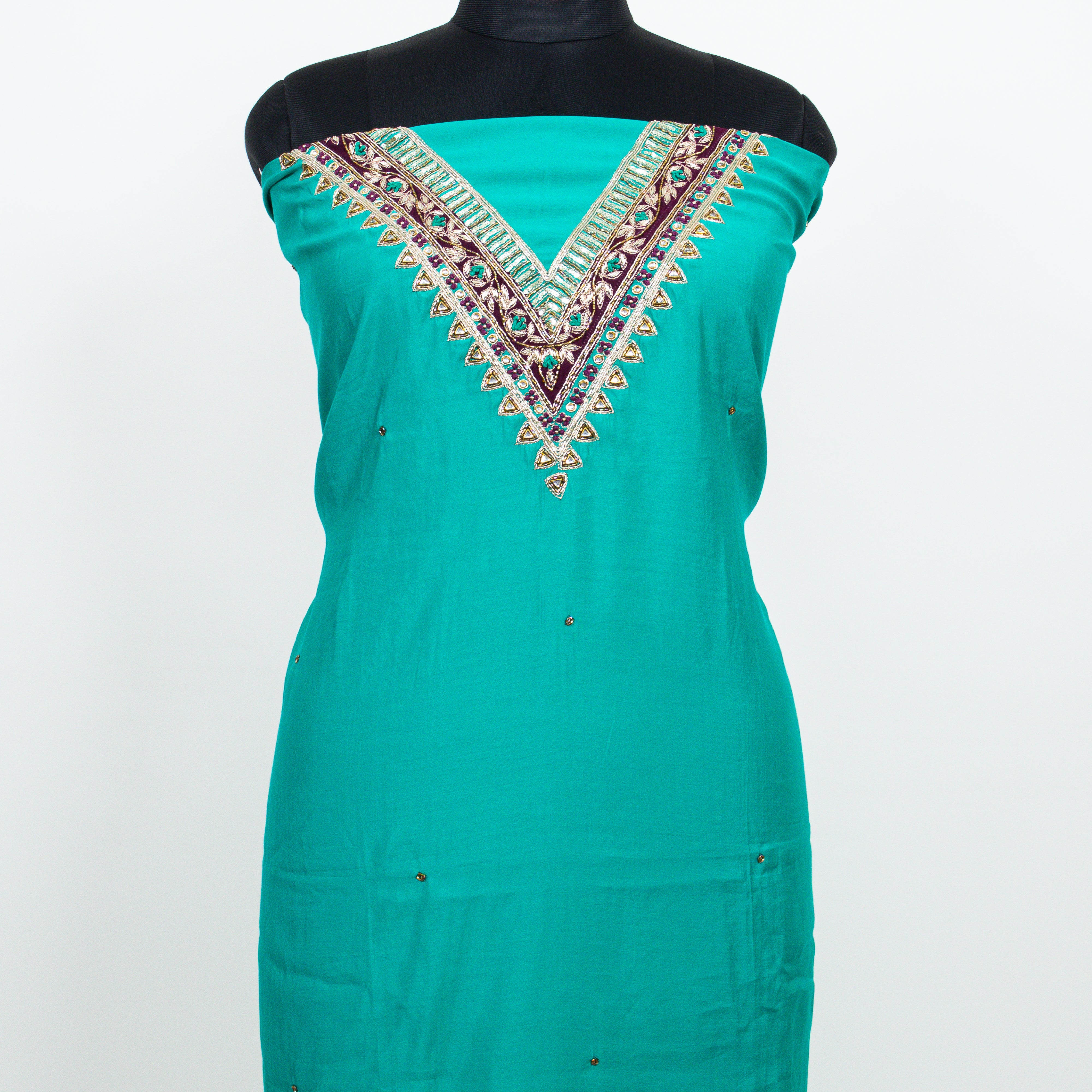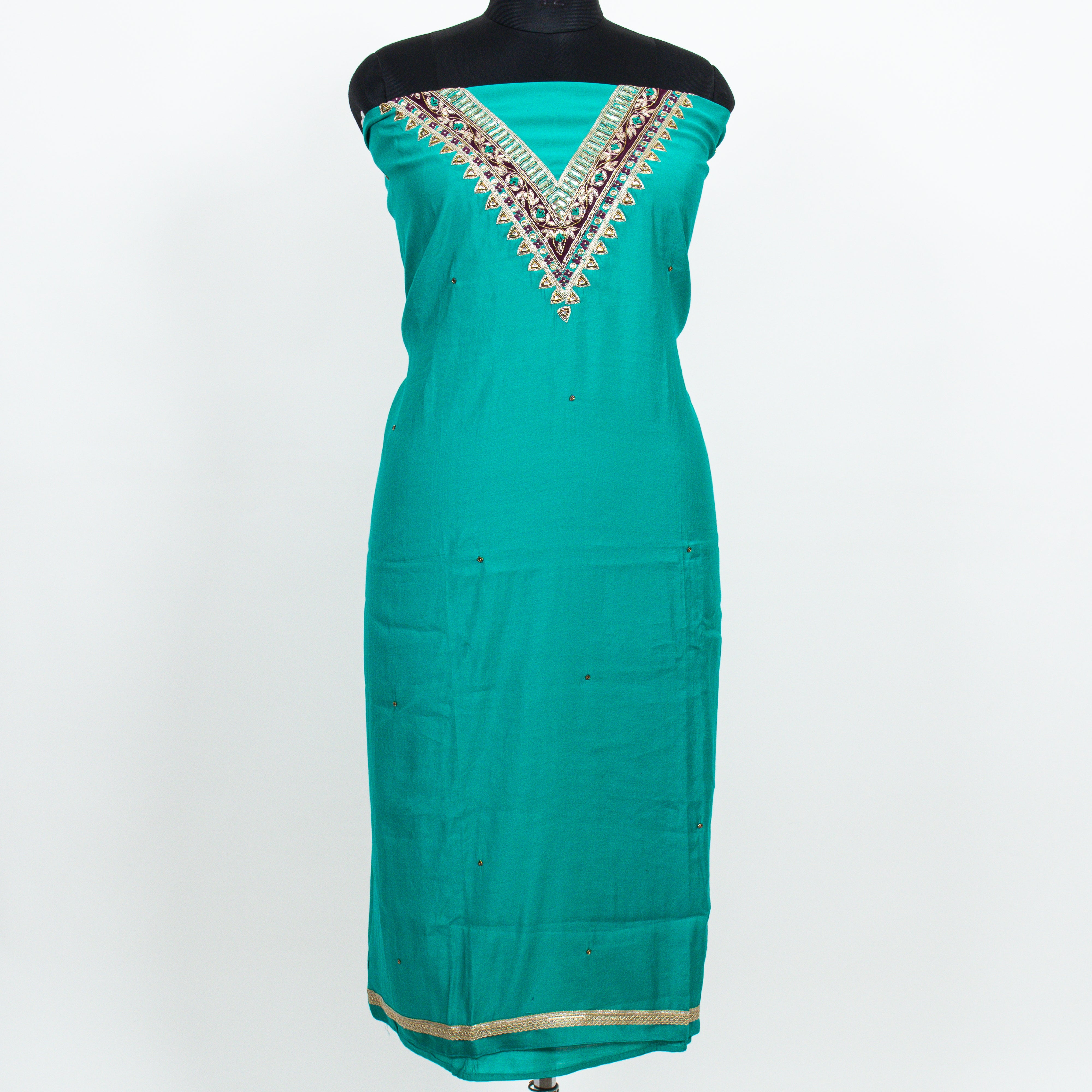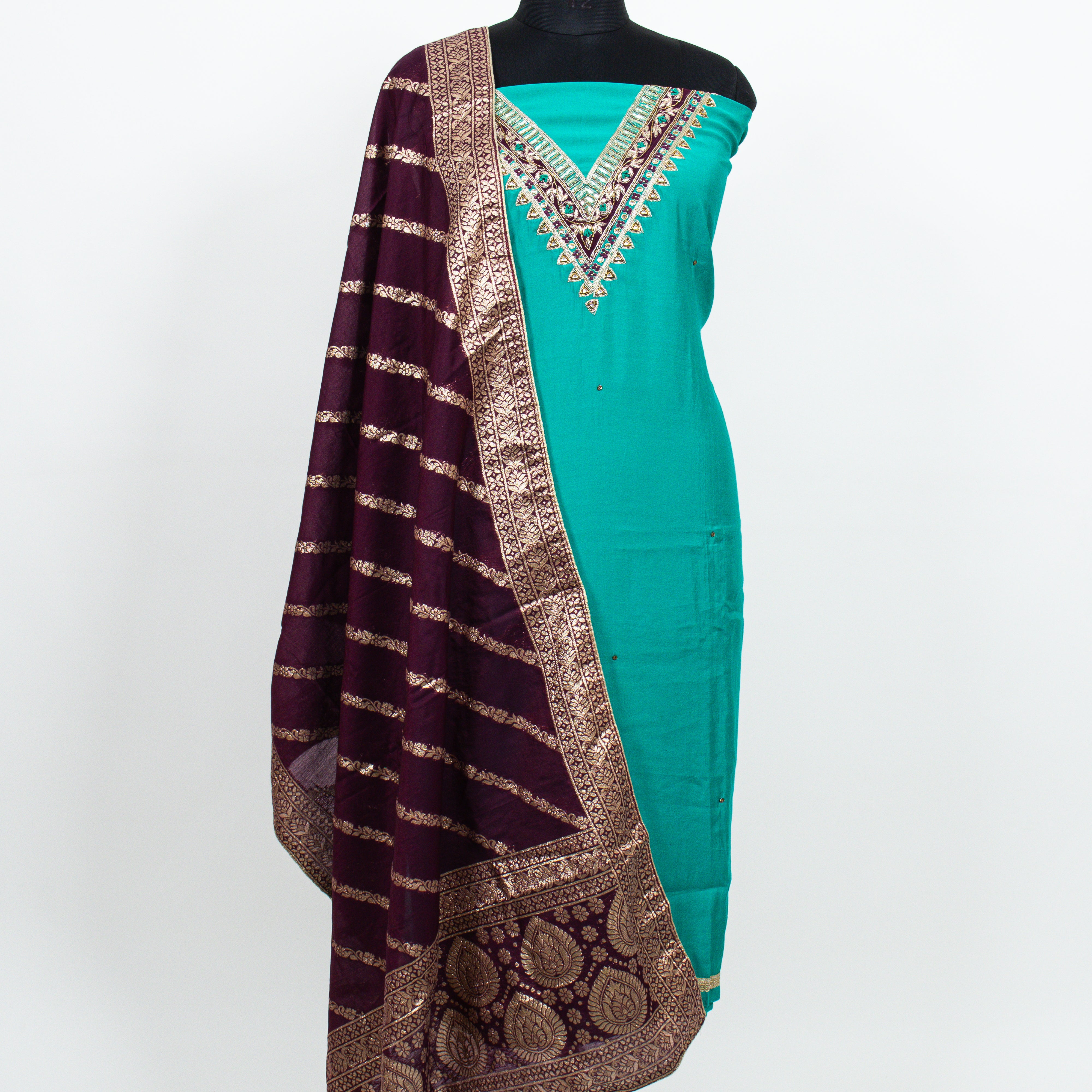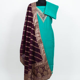 Blue color Party Wear Designer Suit fabric with embroidery and banarasi dupatta