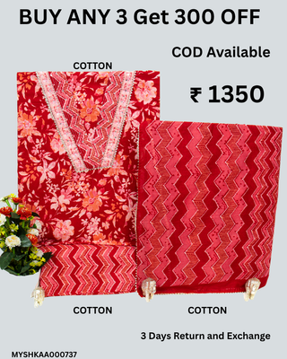- Fabric Details : Top : Pure Cambric Cotton 60-60 || Bottom : Printed Cotton bottom || Dupatta : Cotton Dupatta