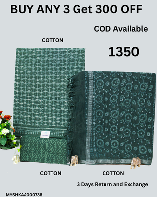 - Green Cotton Office Wear Suit Fabric with Cotton Dupatta