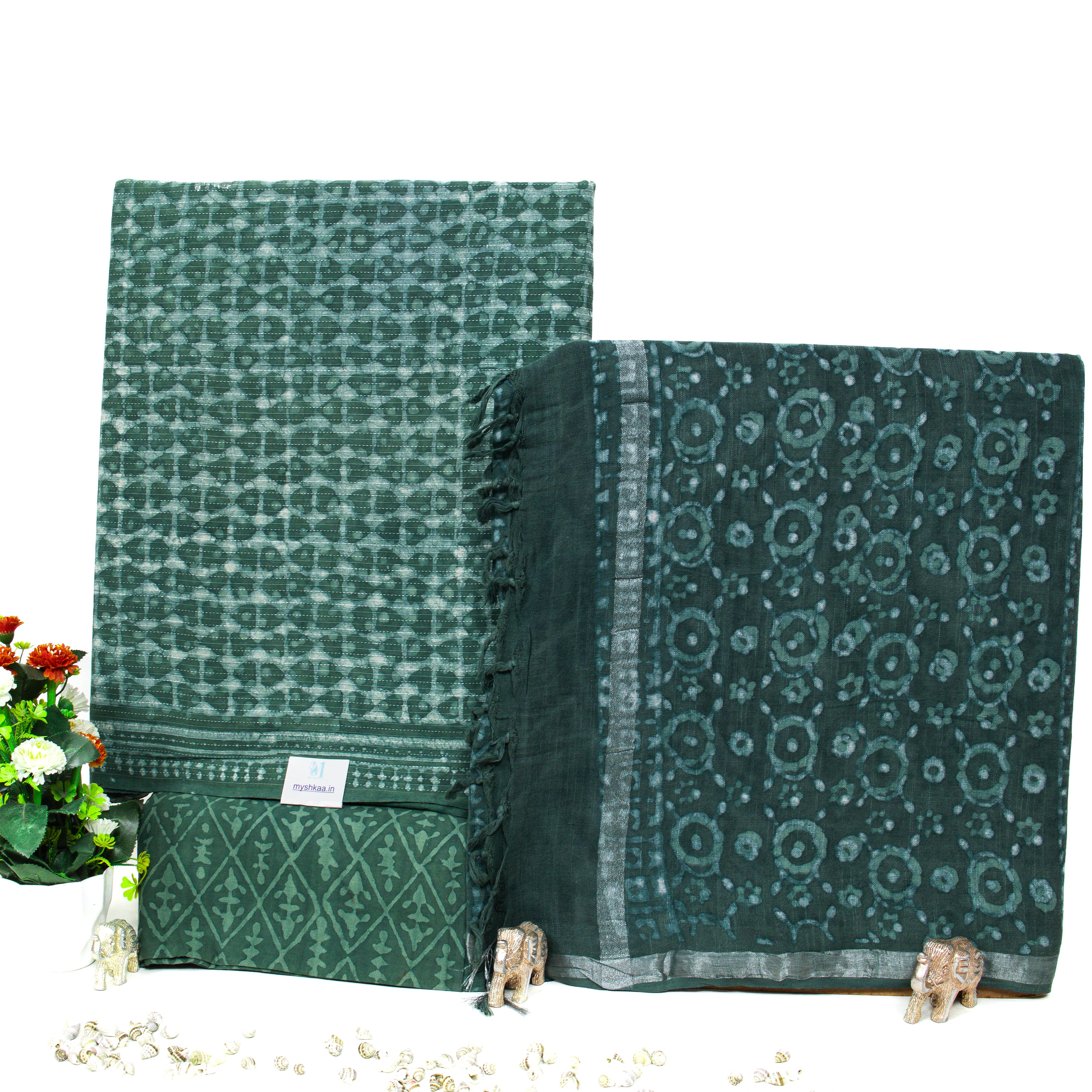 Green Cotton Office Wear Suit Fabric with Cotton Dupatta