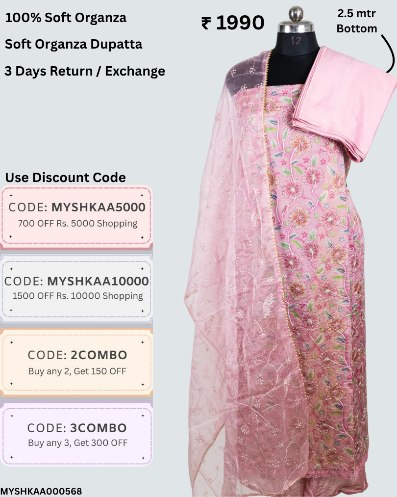Pink Organza Party Wear Suit Fabric with embroidery organza dupatta