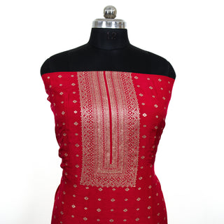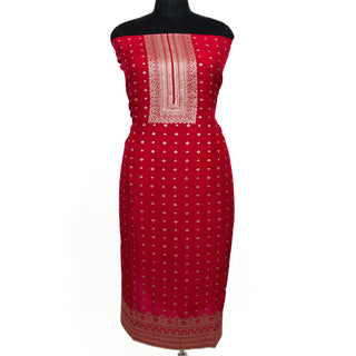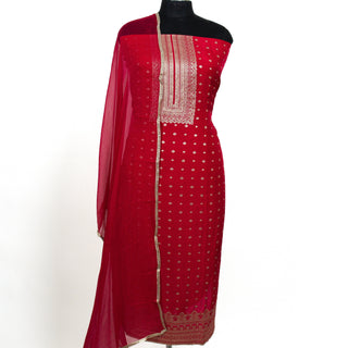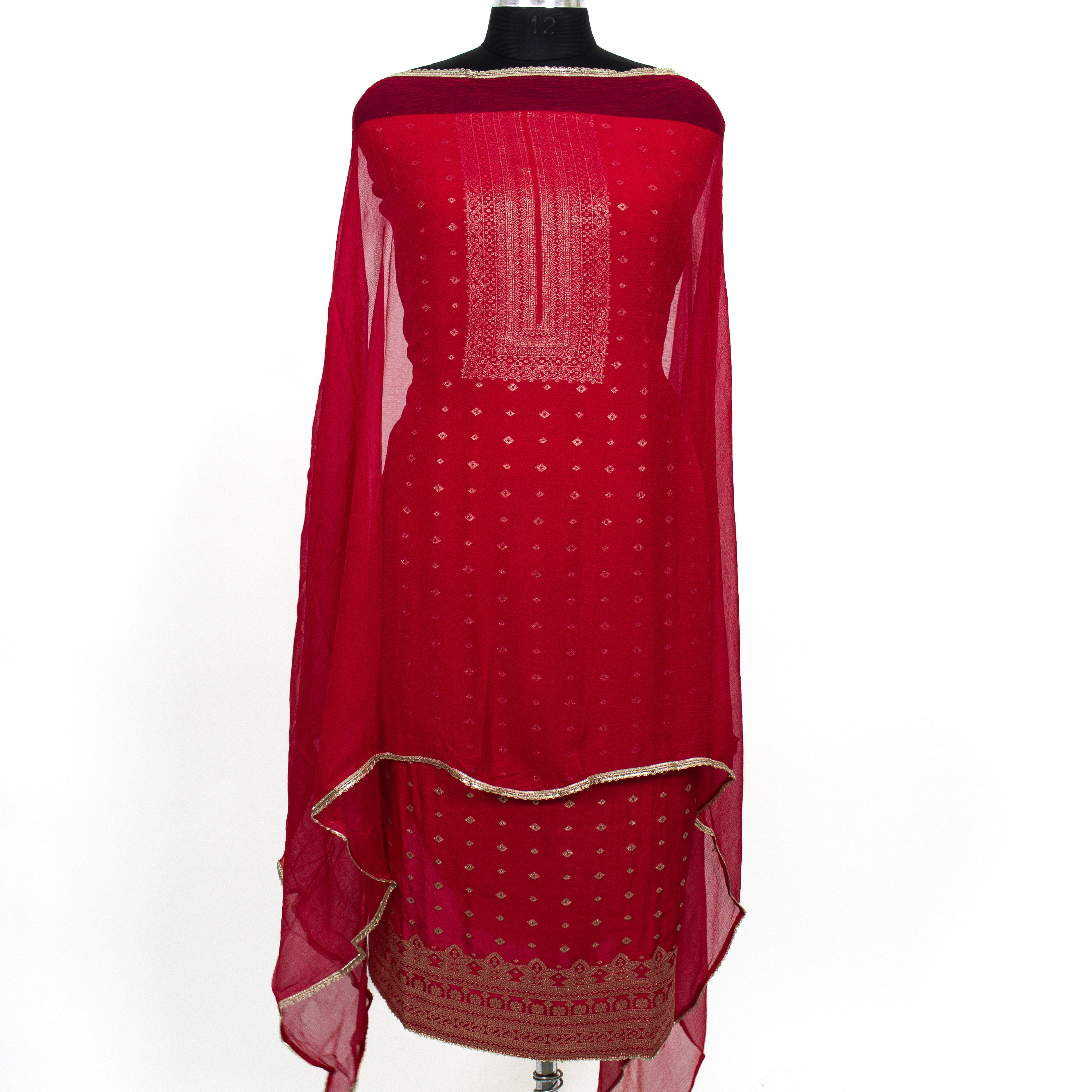 Red Color Dola Silk Party Wear Designer Suit fabric with chiffon dupatta