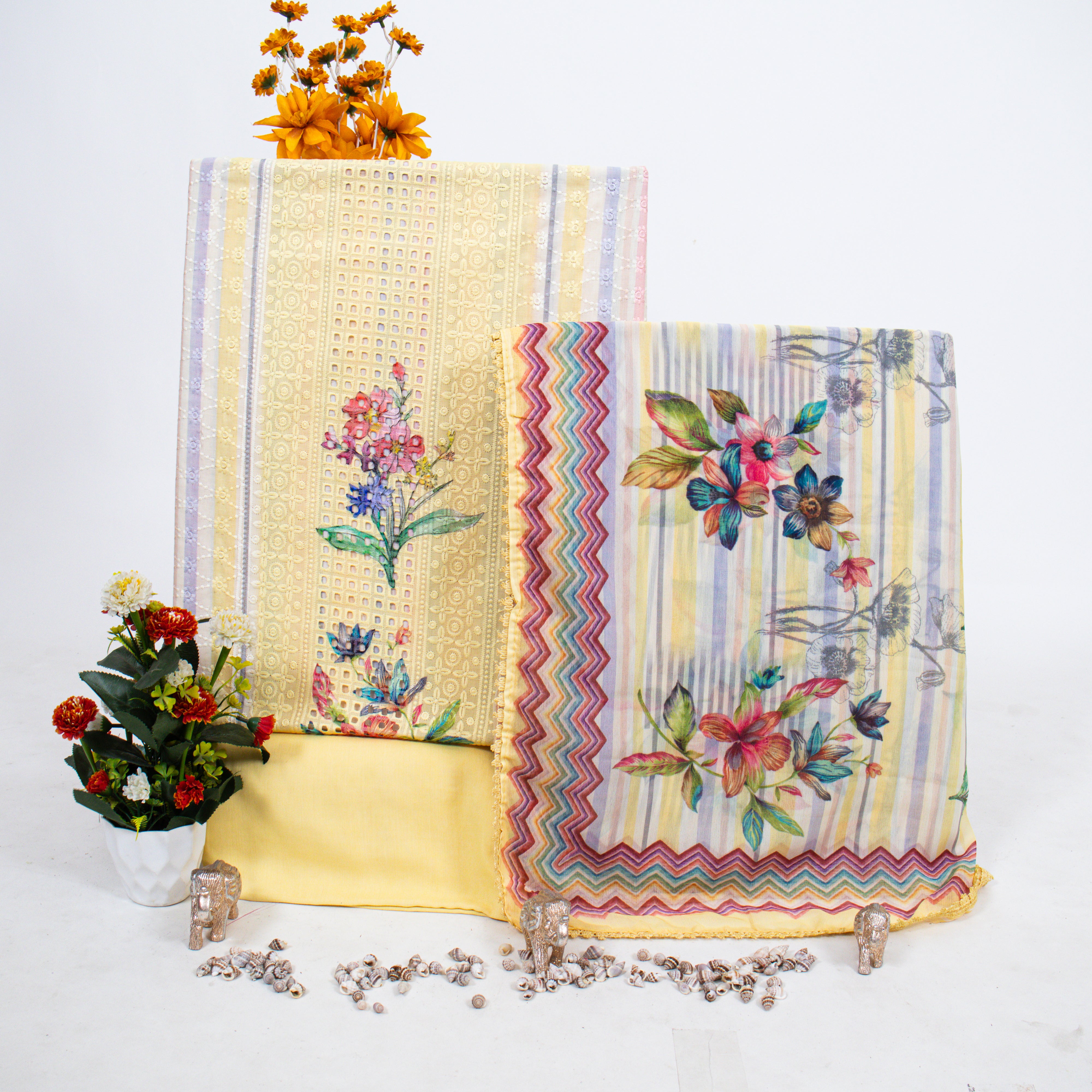 - Yellow Office Wear Suit fabric with chiffon dupatta